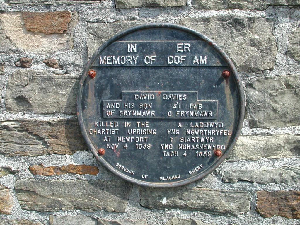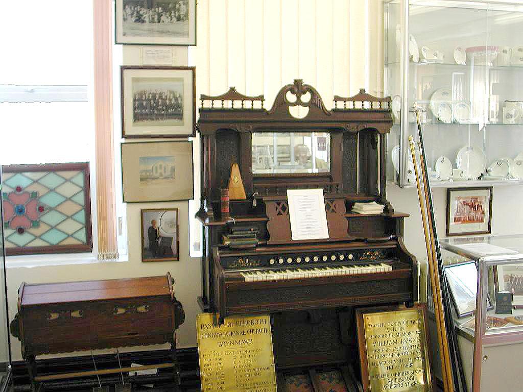 Brynmawr View of Brynmawr and the hills beyond from King Street overlooking Well Street. According to Hilda Jennings in her 1934 book Brynmawr: A Study of a Distressed Area, "Up to 1800 it (Brynmawr) was practically uninhabited. The great hill fringed on one side by the long line of willows gave it its early name of Waun-y-Helegyn, or the field of the willows, remained for centuries untenanted except by the inhabitants of two or three farm-houses and shepherds' cottages." Brynmawr Entering the town from the south the Brynmawr mural, commissioned to commemorate the town's Golden Jubilee in 2002, is a beautiful and welcoming sight. Brynmawr View of Market Square. The Town War Memorial stands to the right. As early as 1844 a Market Hall was built and after various alterations was replaced by a new and larger hall in 1894. The trade done in the market was largely wholesale, but in addition several local shopkeepers had stalls there, and applications for places in the market were received from as far afield as Sheffield. Christmas poultry fairs were held in the hall, and stock fairs on the adjoining ground. The new hall was built at the public expense and was opened by a civic ceremony and lunch to which two hundred guests were invited. (Jennings) Brynmawr Close-up view of The War Memorial at Market Square. Brynmawr View of the New Griffin Hotel (formerly the Castle Hotel). Bailey Street is to the right and Beaufort Street to the left. Brynmawr View of Beaufort Street near Market Square, Brynmawr. Beaufort Street has been the focus of Brynmawr's business district since the town's early days. By the mid-19th century many merchants had set up shop here to serve the growing community of industrial workers pouring into the town. Ferrari's, to the left, was the site of the original Castle Hotel, a popular 19th-century pub. The Castle eventually moved into the building on the right of the photo, and was later replaced by the New Griffin Hotel. Brynmawr Additional view of Beaufort Street. Brynmawr The Brynmawr Scene Visitor & Info Centre opened its doors to the public on 11th October 2004. Sue and Robert Ball are the proprietors and it is a not-for-profit voluntary community enterprise. Brynmawr Scene Visitor & Info Centre is situated in 34 Bailey Street, Brynmawr, Blaenau Gwent NP23 4AW. Brynmawr Brynmawr and District Museum, Market Street, is housed in the old public library building. Because of the valiant efforts of those who founded the museum in 2003, Brynmawr's history is being preserved for future generations, and, thanks to the hard work and generosity of many individuals, the museum has managed to amass an impressive and unique collection of treasures from Brynamwr's past. The Museum has already attracted thousands of visitors (including a couple of visitors from overseas). This is a must-stop for anybody visiting the town. Brynmawr View of the interior of the Brynmawr and District Museum. The museum's walls, shelves and cabinets provide visitors with an enlightening look at the history of Brynmawr and some of the town's historic treasures. Brynmawr The museum features several fine pieces of local furniture made by the Brynmawr Furniture company, founded as part of an effort to revitalize the town's economic fortunes during the Depression years - the so-called "Brynmawr Experiment." Brynmawr The museum collection includes several artifacts from Rehoboth Church (additional photos below), which once stood on King Street, including the church organ. Brynmawr Some of the photographs on display at the museum feature students and members of various organizations and clubs. Could one of your relatives be here? Brynmawr These artifacts found in the museum are a tribute to Brynmawr's brewing heritage. Some of the town's present-day pubs (the location) have been in business for well over a century. Cheers! Brynmawr Some of the museum's collection focuses (naturally) on Brynmawr's rich industrial heritage. The photo here features a well-preserved 19th-century miner's lamp. Brynmawr View of Somerset Street (upper end). My Thomas ancestors were living on Somerset Street in the 1841 census. The family emigrated to Scranton, Pennsylvania in 1848. Somerset Street was created during the town's expansion period, 1820 to 1840. Brynmawr View of Somerset Street (lower end). Unlike the industrial settlements of Nantyglo, Beaufort, Blaenavon, and to a lesser degree Clydach, where the iron works were actually situated, the dormitory town of Brynmawr owed little in the way of building enterprise to the great employers. Individual workers built their own cottages here and there along the tramroads in the very early days, and shortly afterwards tradesmen who, like the workers, were attracted by the central position of the town, began to build courts and rows of houses as a commercial speculation. Later still, thrifty workers, who built their own cottages, invested what was left of their savings in the building of an additional cottage which was inhabited by a married member of their family or let to a fellow worker, and speculative builders put up rows of houses. (Jennings) Brynmawr View of Glamorgan Street. My Davies ancestors lived on Glamorgan Street for many years. Specifically they are listed here in the 1841 and 1851 census of Brynmawr. Like Somerset, Glamorgan Street was also created during the 1820 to 1840 period. Brynmawr Additional view of Glamorgan Street. Brynmawr View of Orchard Street. My Hares ancestors were living here at the time of the 1851 census. Brynmawr The Boundary Stone and Chartist memorial. This stone on Boundary Street marks the meeting point of three different parishes, Llanelly and Llangattock in (old) Breconshire, and Aberystruth in Monmouthshire. The wall plaque here commemorates the death of David Davies and his son David, from Brynmawr, who were killed in the ill-fated Chartist attack on Newport in 1839. Brynmawr Close-up of the Chartist memorial on Boundary Street. Although the main