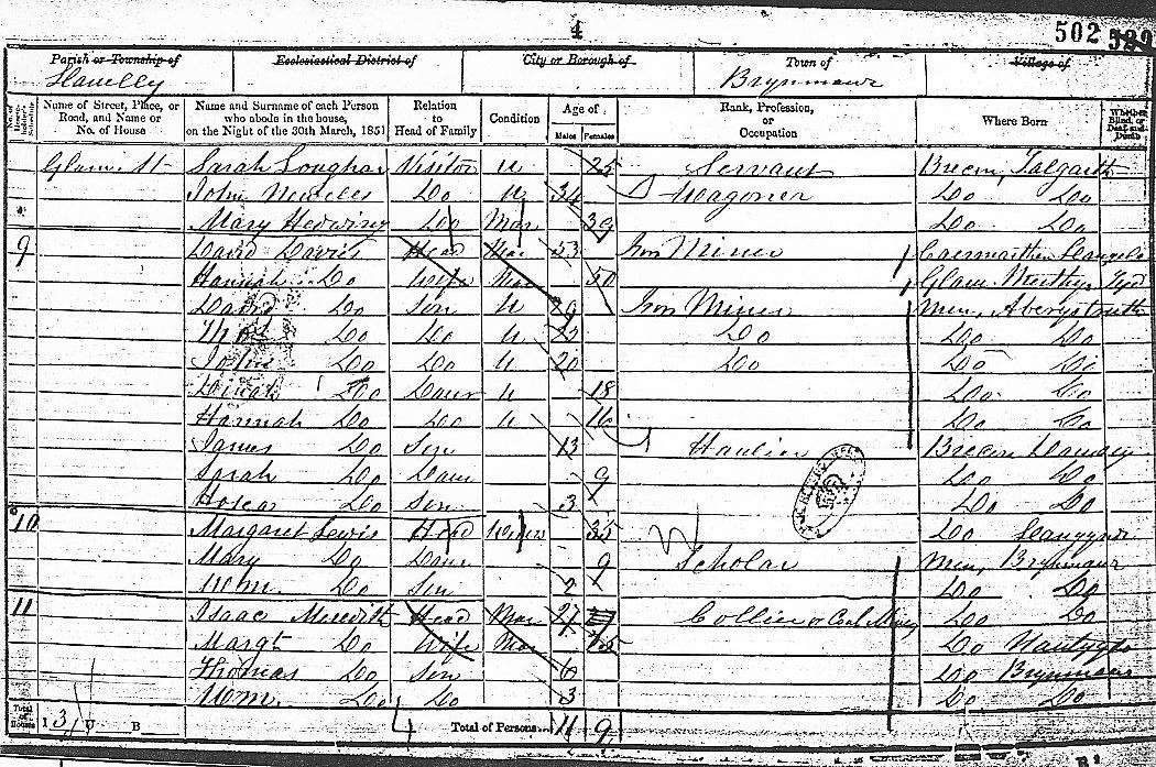 1851 Census, Glamorgan Street, Brynmawr, Breconshire, Wales