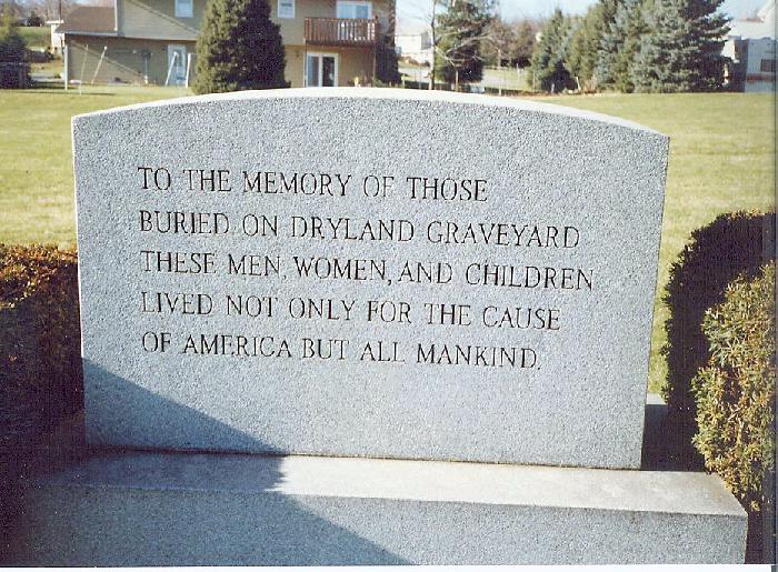 And this roster board lists members of the Boorem family who were buried in the Dryland Cemetery, including John Boorem I (1771-1810), his wife Catherine (1774-1850), and their son Jacob (1799-1856), and his wife Catherine, (1797-1868). Records from the Dryland church also indicate that John & Catherine's infant children Sarah and Joseph are also buried here.