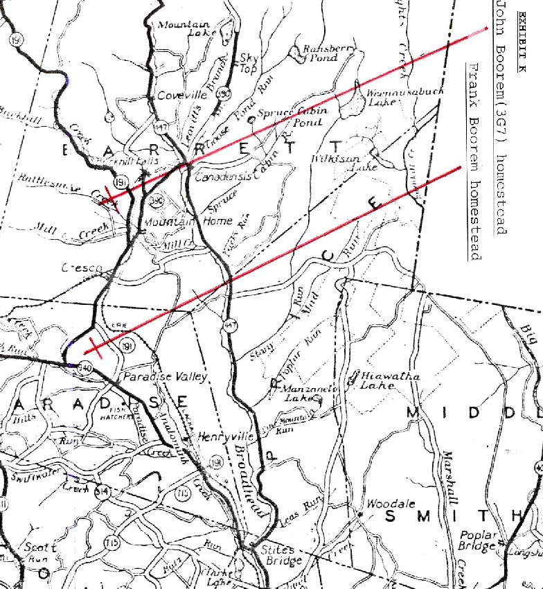 EXHIBIT L: Detailed map of Mountainhome and Paradise Valley, showing the approximate locations of the John Boorem farm and the Frank Boorem Farm.