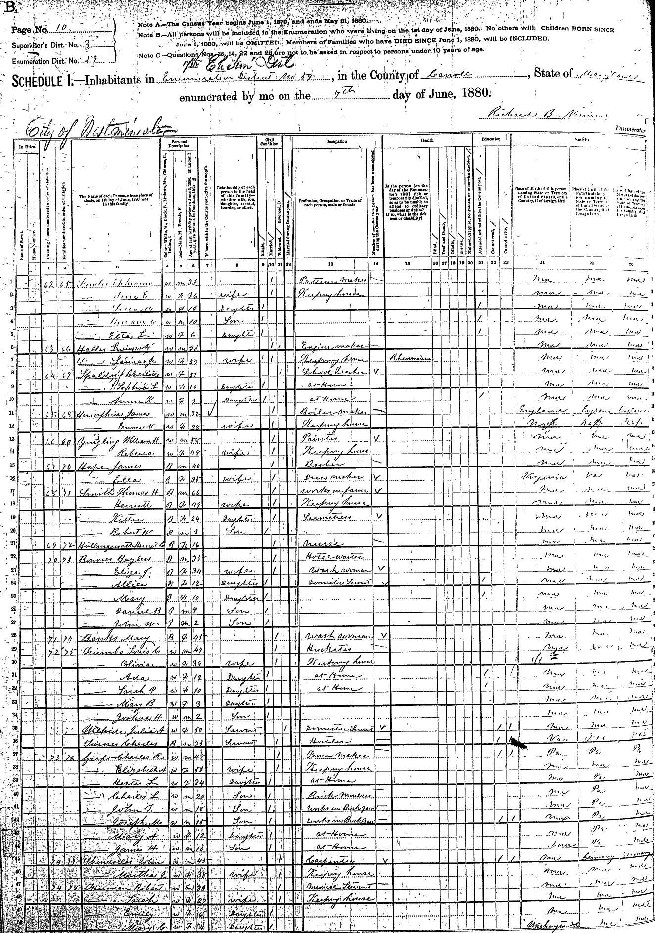 1880 Census, Westminster, Carroll Co., MD
