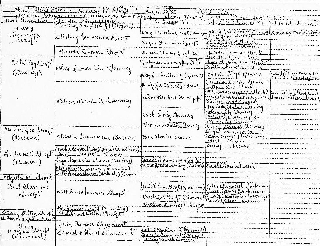 Roland Armacost was the husband of Treva Groft, daughter of Charles L. Groft and Alice Miller. Roland was interested in genealogy, and during his lifetime he complied a genealogy of the Groft family. I have included here his original tree for the line of Charles L. Groft.
