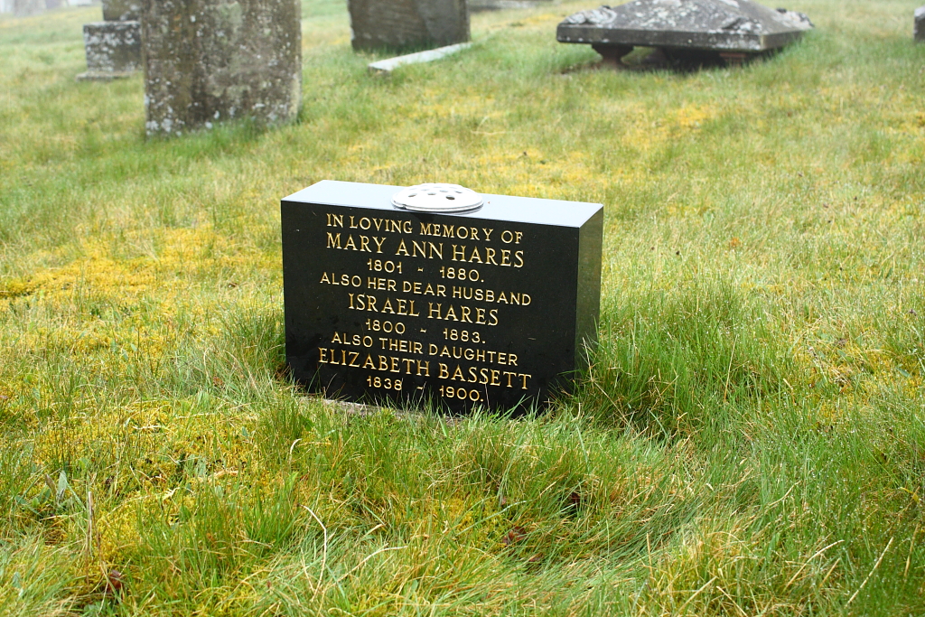 Israel Hares was christened 2 Mar 1800, and married Mary Ann Collins in 1823. He and his family eventually moved to south Wales where they followed the mining trade. Israel and his family are discussed in greater detail below.