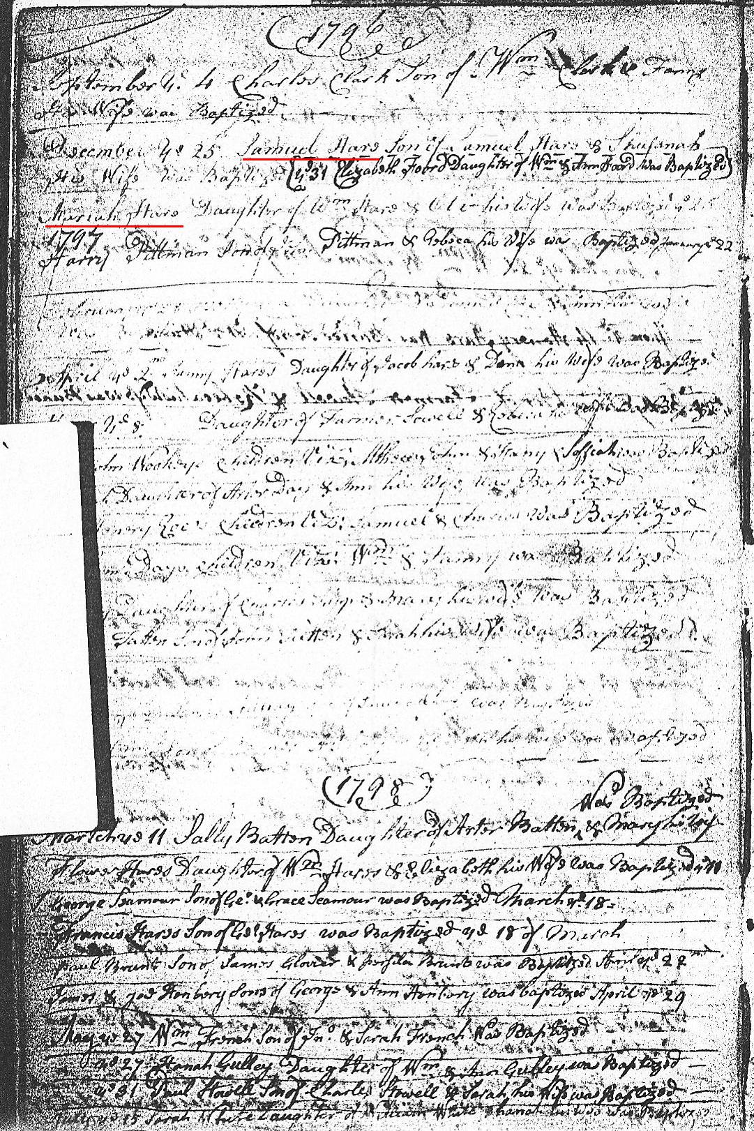 Samuel Hares, christened 1 May 1763 Joseph Hares, christened 2 June 1773