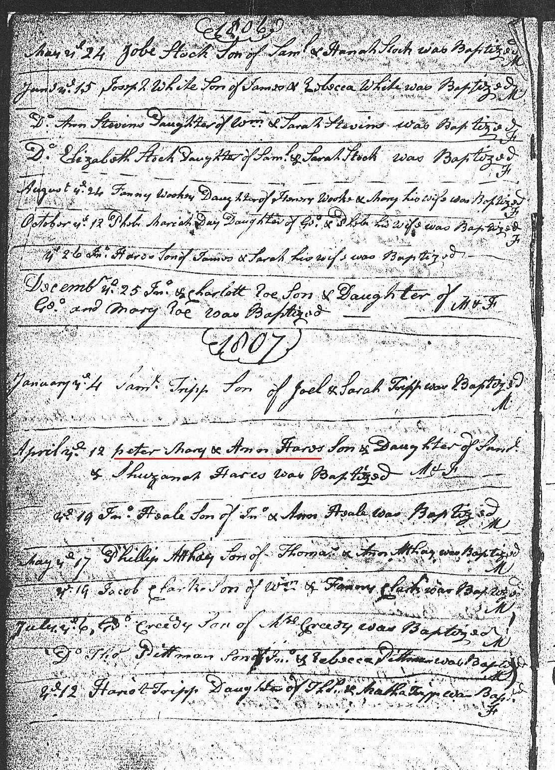 Mary Hares was christened 12 Apr 1807, and I have no additional information regarding her life.