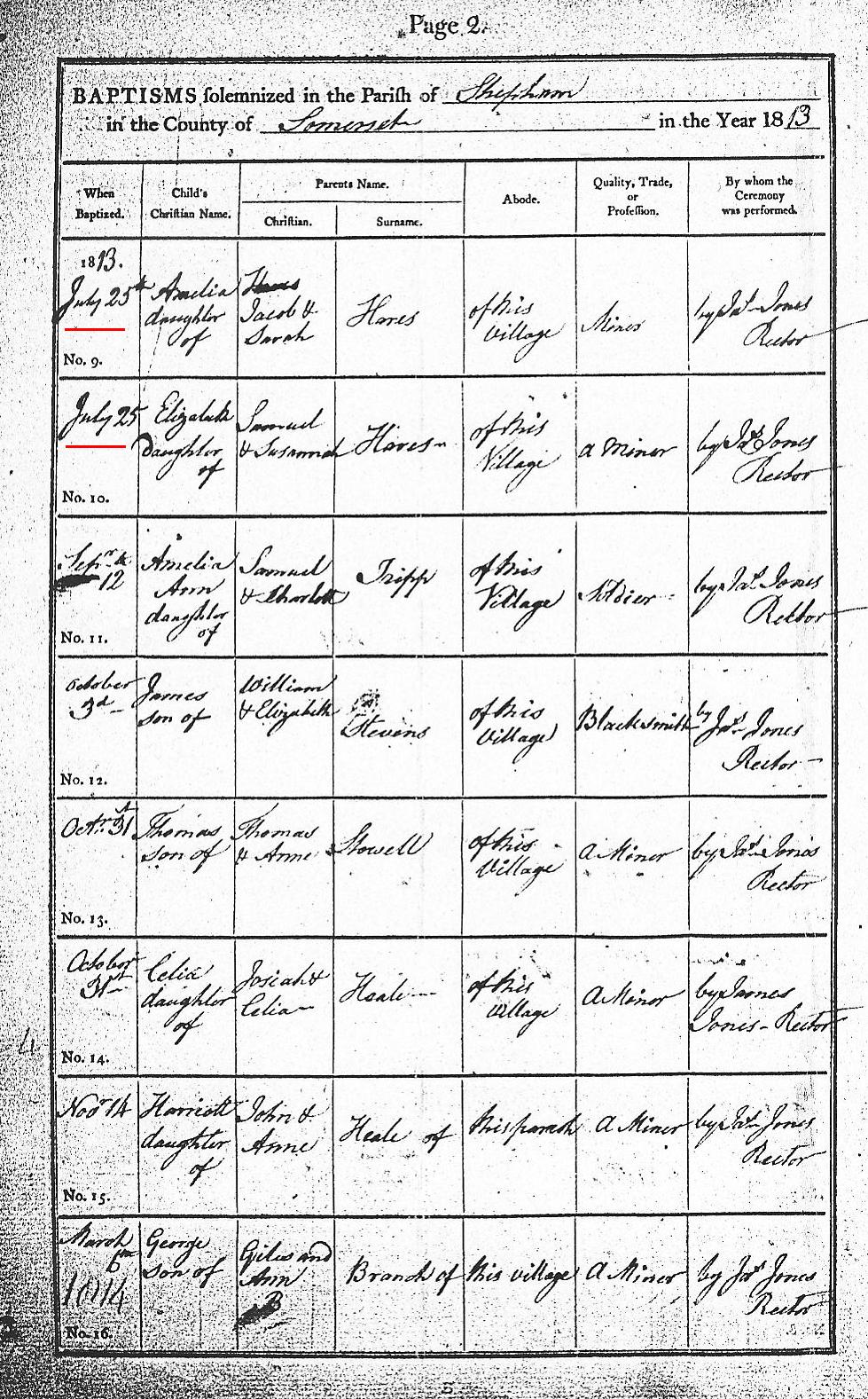 Elizabeth Hares was christened 25 July 1813. It appears that she never married, as she appears with her widowed mother Susanna in the 1851 census of Shipham.