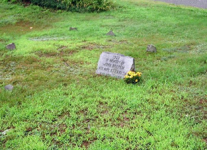 By 1900 Jake Boorem had moved back to Paradise Valley and was living with his brother Frank and family, and family tradition indicates that Jake had already been living with his brother for several years prior to the 1900 census. A death registered recently discovered at the Monroe County Historical Association in Stroudsburg, indicates that Jacob Boorem died on January 29, 1901 in Paradise Valley, at an age of 77 years, and was likely buried with his mother and father in the Keokee Chapel Cemetery in Paradise Valley. A stone mentioning Jake and his mother and father was erected on the plot in 1923, and reads as follows: