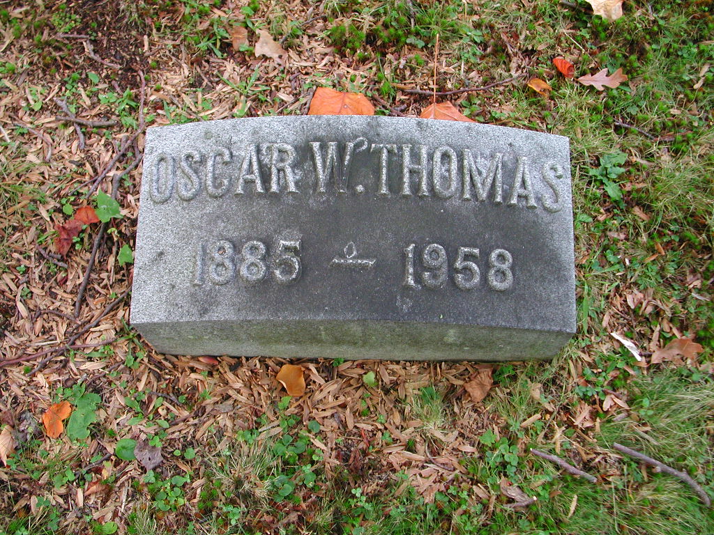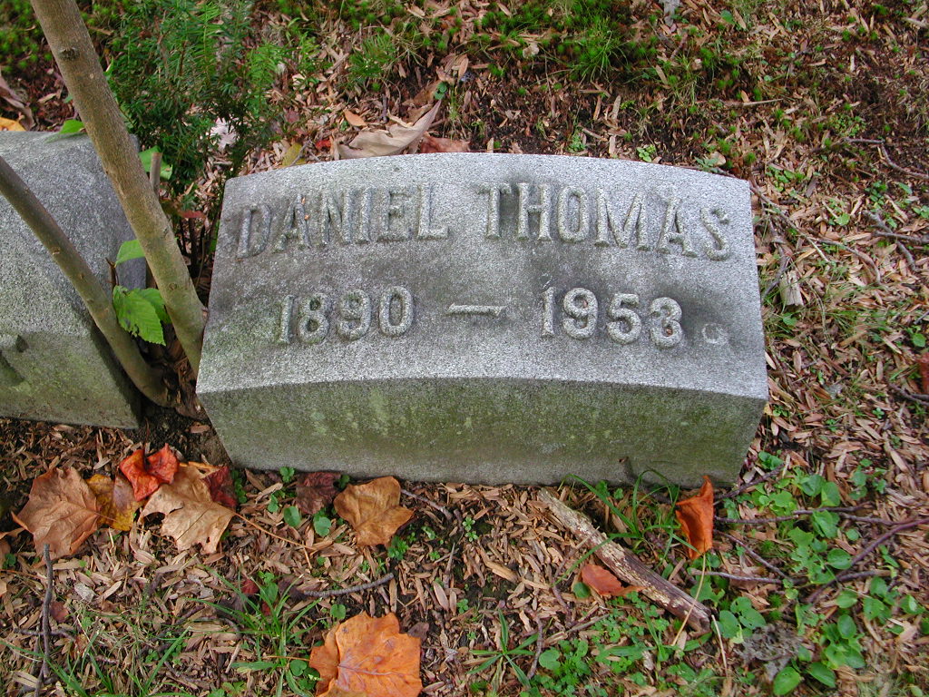 Below: The J.J. "Drummer" Thomas plot in Forest Hill Cemetery, Dunmore. Click on the thumbnails to view the plot and the individual markers. The orientation of the markers matches the actual layout of the plot.