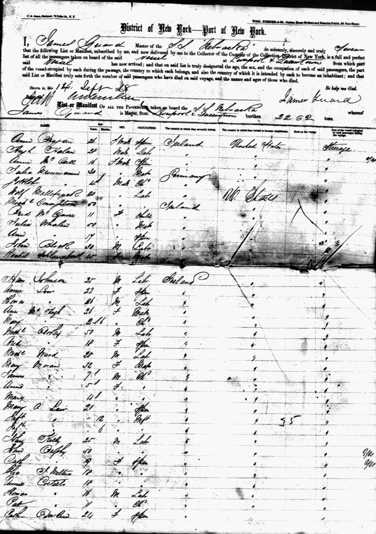 Follow this link for an image of the front page of the Nebraska's passenger list for the voyage that brought Joseph P. Phillips to America. The Nebraska arrived in New York on 14 Sept 1868. Jos. Phillips is listed on page 2 of the manifest as a 20-year-old laborer.In the spring of 1884, he resigned, and in May of that year was appointed assistant city engineer under Edward F. Blewitt, with whom he continued until March, 1893. He was then elected by the council to fill the unexpired term of city engineer, and in April, 1894, was elected for a full term of three years. Most of the improvements in this line in the city have been made since his first connection with the office, among them being the building of the two bridges across Roaring Brook and the paving of streets.