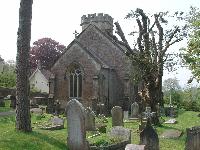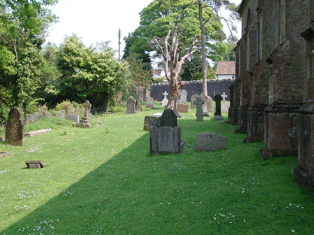 Approaching the church from the center of the village of Shipham. The gate entrance leading to the cemetery and church. General view of the church from the entrance gate. View of the tower and doorway to the church. Close up view of the doorway. Close up of the gargoyle on the right hand side of the church door. Close up of the gargoyle on the left hand side of the church door. Two gargoyles from the top of the tower at St. Leonard's. Exterior window with gargoyles. Exterior door with gargoyles. List of Rectors of St. Leonard's hanging near the gallery stairs. The first priest was John the Rector in the mid 13th century. The church then was a plain little building with stone seats around the walls and a low square battlemented tower, surmounted by a short spire. An old drawing of the church shows that there were two early English windows and there is a possibility that another may have been of Norman origin, thus linking the church with the time of the Domesday Book. Plaque mentioning the rebuilding of St. Leonard's in 1842 hanging near the gallery stairs. General view of the interior of the church. View of the ceiling. View of the font. The font cover was carved from the doors of the medieval church by a local craftsman in 1910. View of the stained glass window dedicated Christian women of the early church, Dorcas and Phoebe, given in memory of Hannah More, the philanthropist and teacher who came to Shipham and set up a school in 1790. Close up of the dedication to Hannah More from the stained glass window above. The window behind the alter commemorates a former rector, the Revd Melmoth A. Lintern. Stained glass window dedicated to St. Patrick & St. Lawrence Memorial tablet to the Rev. James Jones authored by Hannah More. Surviving from the original church is the attractive 14th century reredos located behind the alter. Small marker beneath stained glass window dedicated to Mary Hares recognizing her years of faithful service to the church. View of the cemetery from the rear of the church. A row of Hares family markers in the cemetery. Follow the preceding link for more information about these graves.