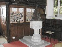 Little is left today of the old church but the font cover is said to have been carved from the wood of the original door. Cut into panels, it was carved by village craftsmen around 1910. Behind the alter you will see the reredos, a fourteenth century carving removed from the earlier church. And outside, the gargoyles around the tower are old and probably from the former church.