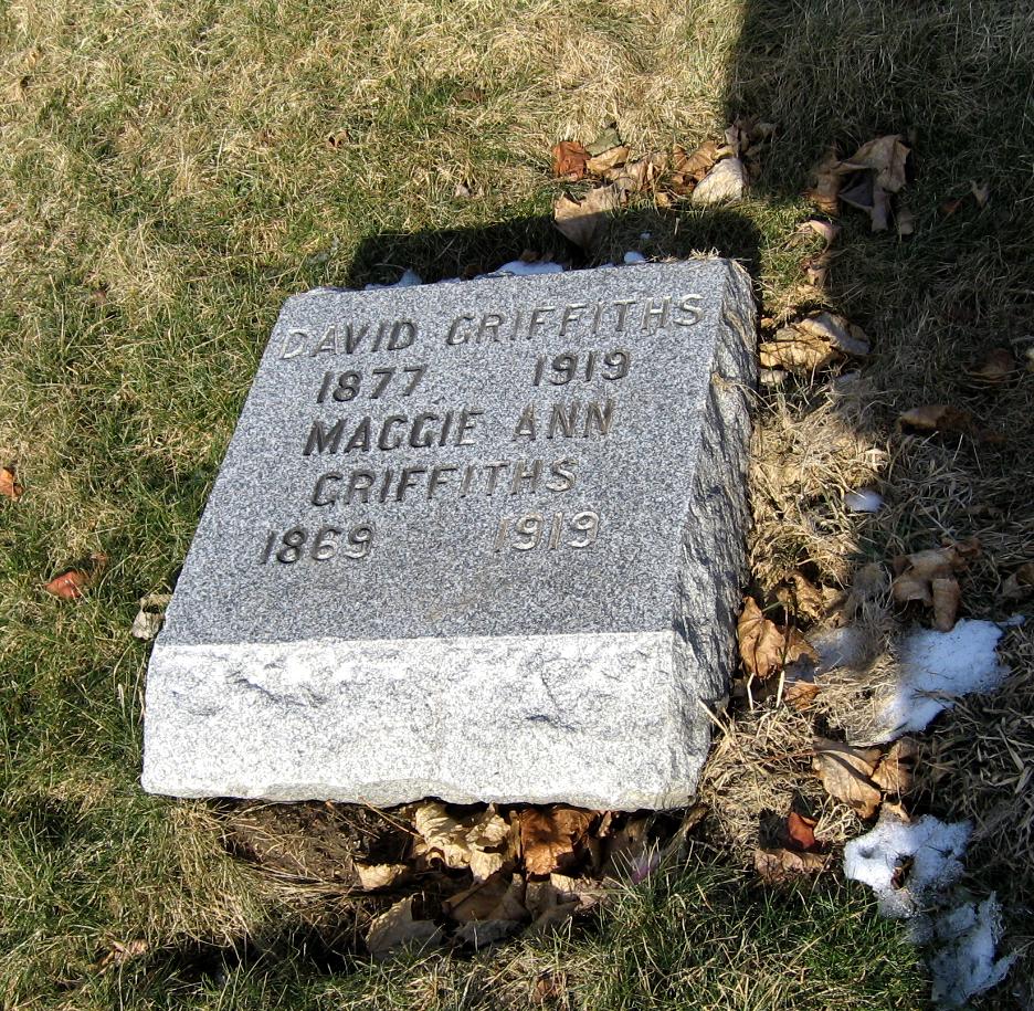 | GRIFFITHS, David | 1877 | 1919 | brother of John G. (below) & Maggie Ann Griffiths, same marker as Maggie Ann |