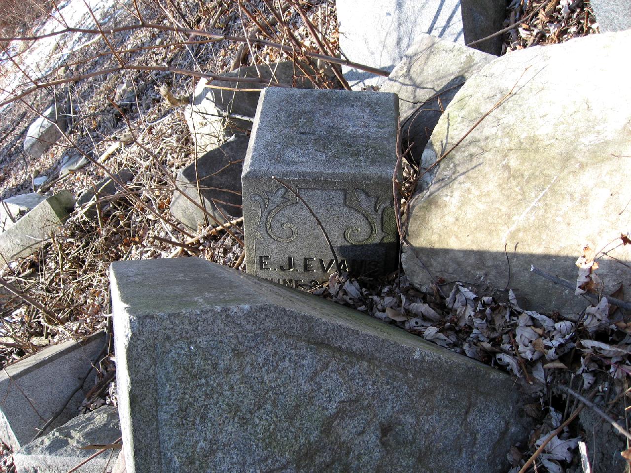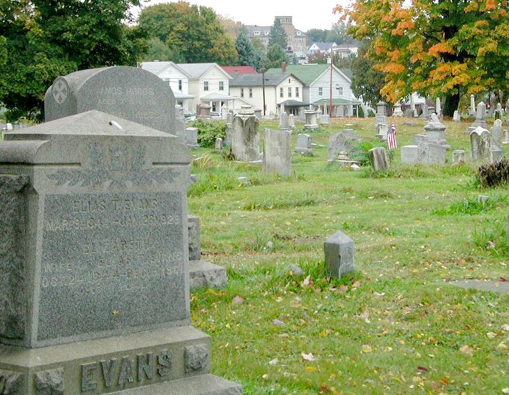 Below: general view of the "old Welsh" section of the Washburn Street Cemetery,
