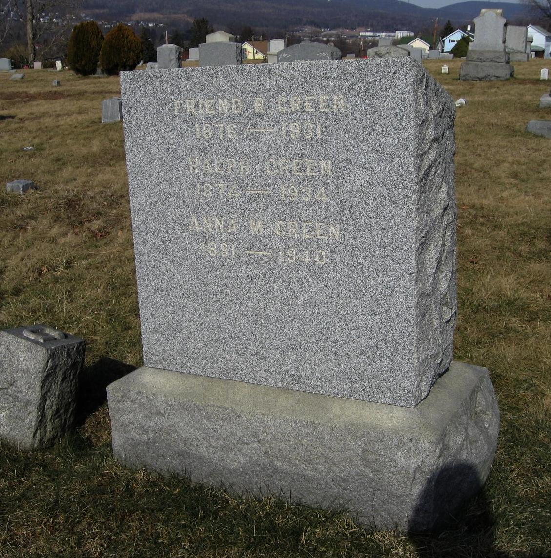 | GREEN, Friend R. | 1876 | 1931 | son of Michael T. & Mary H. Green, same marker as Michael, Mary, Ralph & Anna Green |
